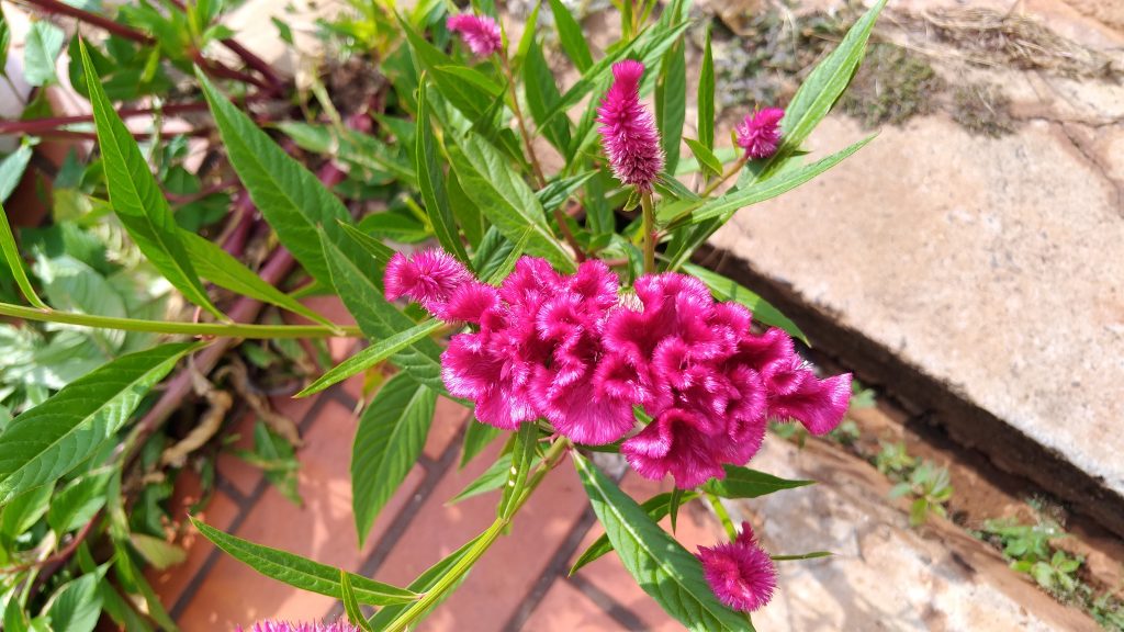 Não sei que fim deu a flor, acho que depois de um tempo a planta seca – também não entendo muito de botânica 😁, mas o pé de crista de galo desapareceu…